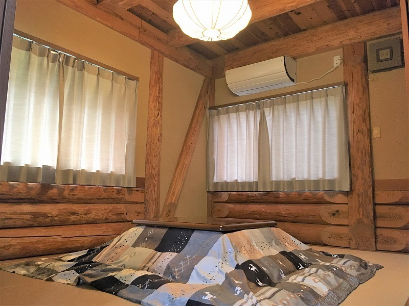 冬季はログハウスには珍しい堀こたつをセットいたします